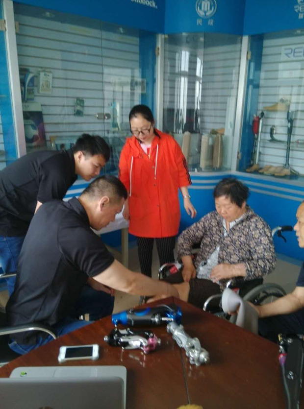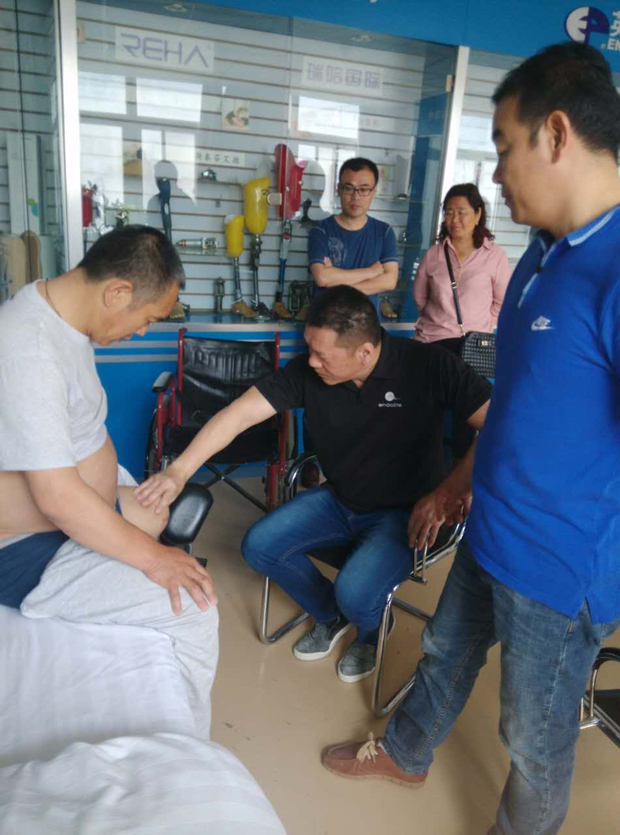 英中耐技術(shù)總監(jiān)林榕光還為患者演示了英中耐的ESK氣壓關(guān)節(jié)、天鵝液壓關(guān)節(jié)及四連桿氣壓關(guān)節(jié)等。在義診活動中,英中耐派遣的專家技師所表現(xiàn)的專業(yè)精神也給患者留下了深刻的印象。