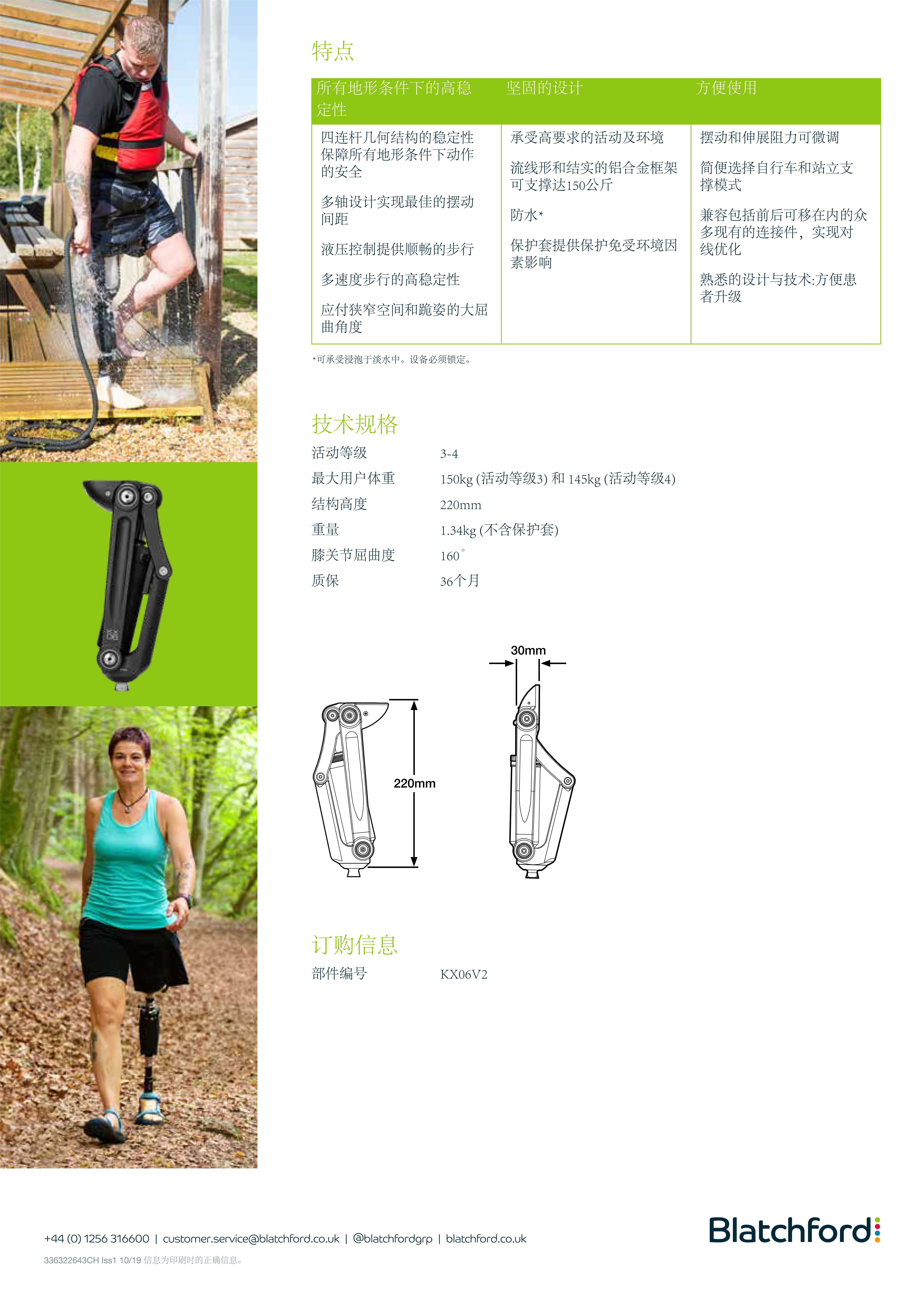它具有高度低的優(yōu)點適合所有大腿截肢長度的用戶,并且大功率的液壓缸足以支撐任何體重和高活動量,使用戶能自如自在的做到交替下樓梯、走大坡度的斜坡,甚至進行跑步和其他極限運動。它的極穩(wěn)定的多連桿長力臂結(jié)構(gòu)不但使行走更省力,更重要的是其高度安全性使它同樣適合髖離斷患者使用。