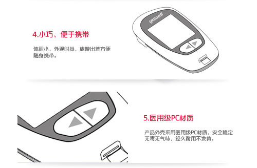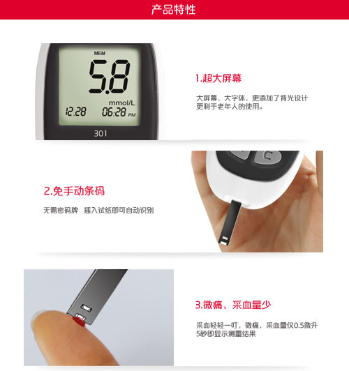 0.5微升采血量 ,5秒快速檢測,300組記憶值,免條碼,自動退條,血糖管理軟件,數(shù)據(jù)傳輸功能