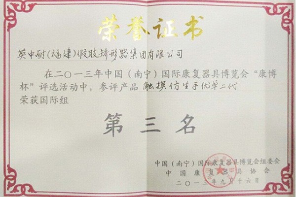 艾倫仿生電子踝腳在“康博杯”評選中獲獎