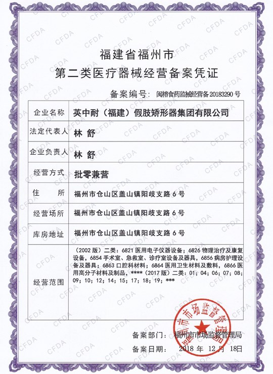 第二類醫(yī)療器械經營備案證